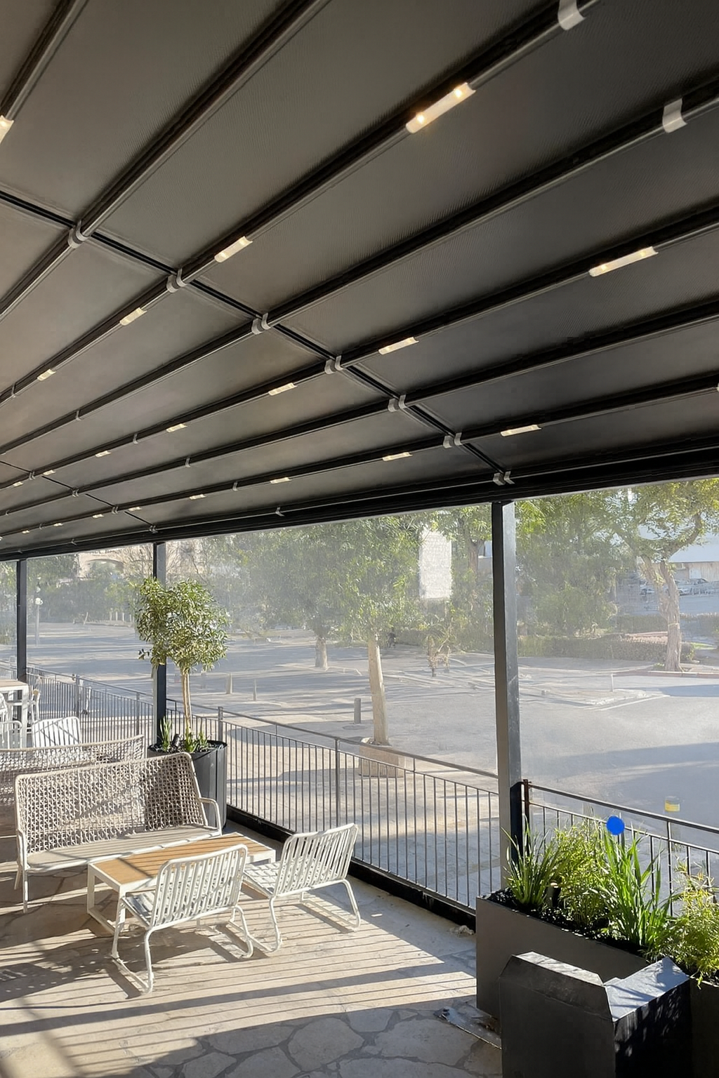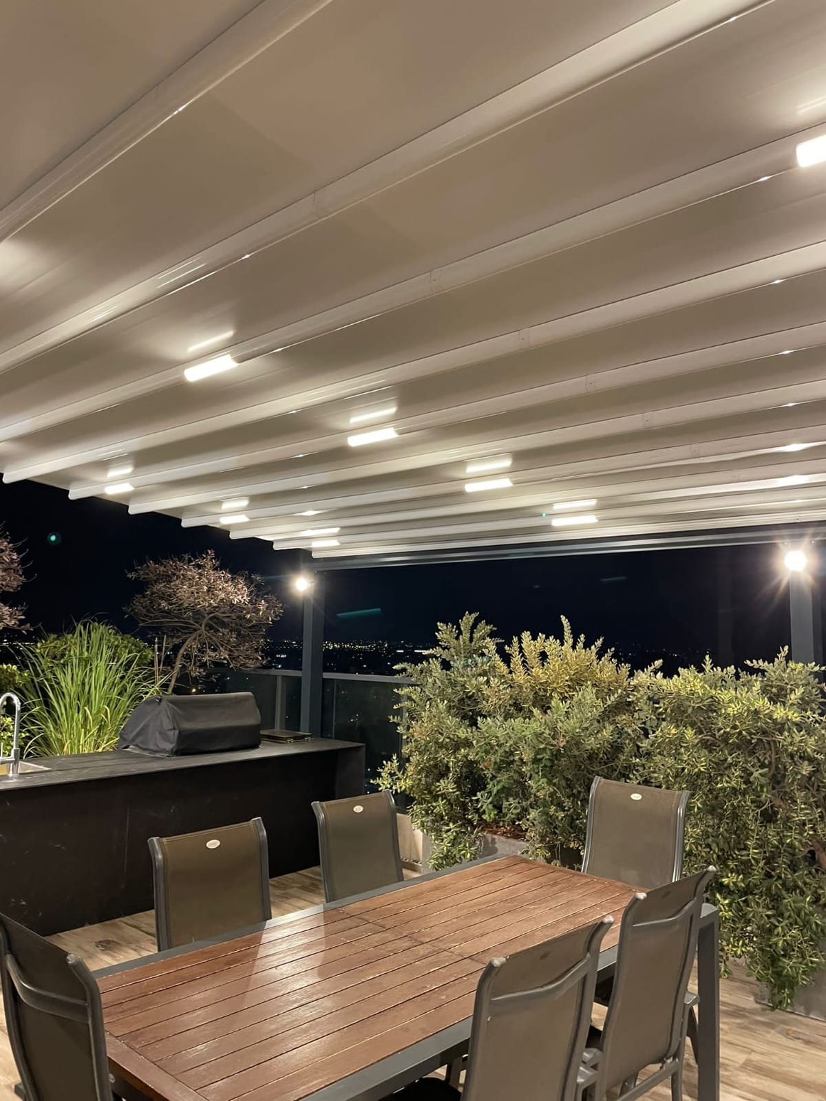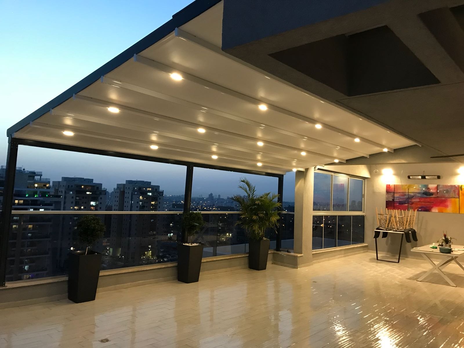 הבד נמתח בדיוק הנדסי, מספק איטום מוחלט מפני מים וקרינת UV, ונשאר מתוח ואסתטי לשנים ארוכות. מערכת הניקוז הסמויה שומרת על יובש וניקיון גם בגשם כבד, בעוד שהפרופילים האלגנטיים מעניקים תחושת מרחב פתוח ומאוורר.