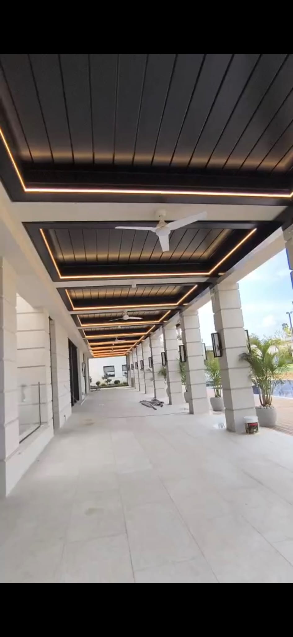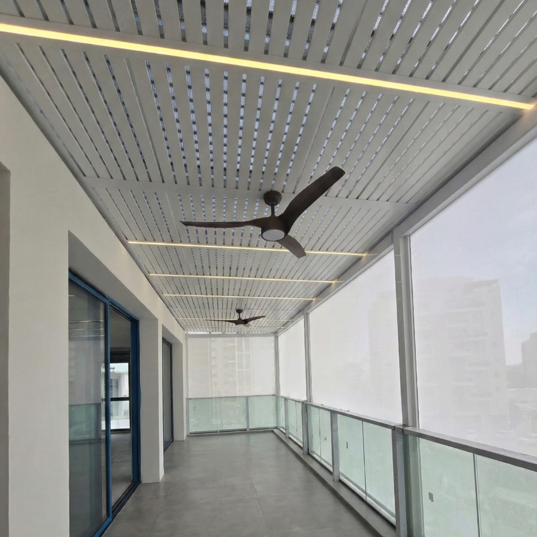 פרגולות האלומיניום הקבועות יוצרות תחושת סדר ושלמות.